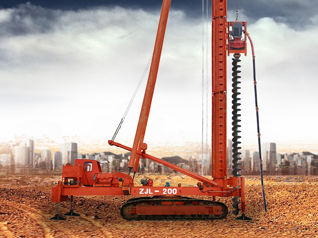 ZJL系列履帶式長螺旋鉆孔機由電動履帶式多功能樁架和鉆進系統兩個部分組成。樁架采用電動履帶式行走機構,自動化程度高、可進行正反180度回轉,移位迅速、轉場靈活。鉆進系統包括動力頭與鉆具,動力頭的輸出軸與螺旋鉆具為中空式,打樁機采用長螺旋成孔,可通過鉆桿中心管將混凝土或泥漿進行泵送混凝土CFG樁施工,即能鉆孔成樁一機一次完成。使用該機進行鉆孔灌注樁作業時,沉孔效率高、沉樁質量好,對于穿透沙礫層效果遠大于錘擊沉樁法,同時還有效避免了錘擊及振動沉樁對地基擠壓而危及臨近建筑物的不良影響。